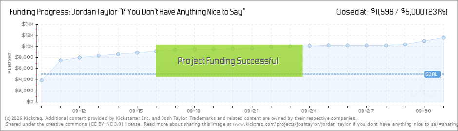 Help your backers reach your daily goals and help others see how you're doing. It's easy, with Kicktraq Mini.Here are a few quick snippits of code you can use to embed your personalized widget on your website, in your blog, and even on your favorite forum.