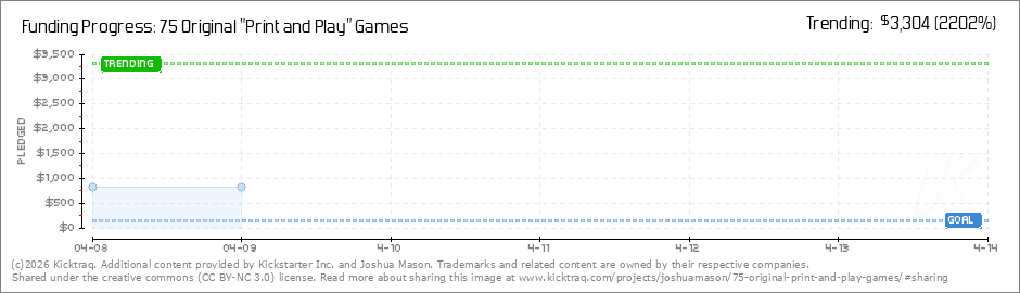 Help your backers reach your daily goals and help others see how you're doing. It's easy, with Kicktraq Mini.Here are a few quick snippits of code you can use to embed your personalized widget on your website, in your blog, and even on your favorite forum.
