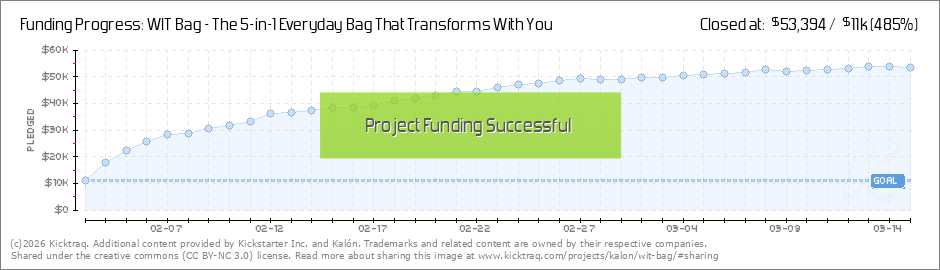 Hello WIT Bag backers! Wow - we couldn’t believe we have exceeded our initial funding goal and reached $15,000 in 24 hours! We can’t thank you enough for sharing our enthusiasm for the WIT Bag. We came up with the WIT Bag to empower women on the... (Read More)