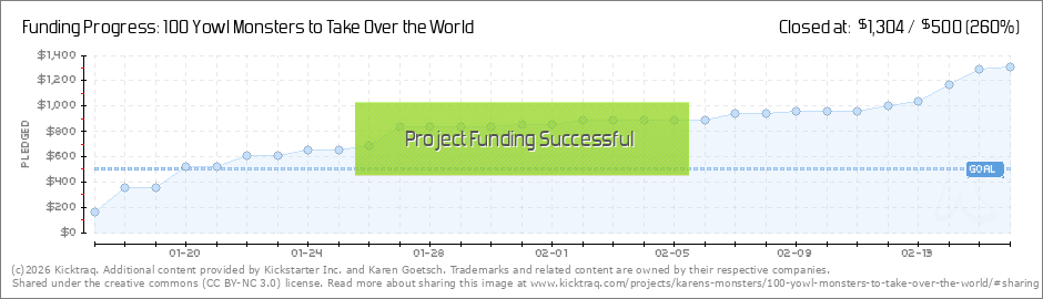 I'm pleased and shocked to see that it's funded already. Because what I really want is to make 100 Yowls, I've added some stretch goals based on the number of Yowls claimed. Right now we're at 15 Yowl Monsters. The first stretch goal will go into... (Read More)