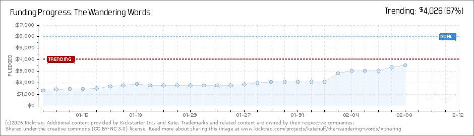 Help your backers reach your daily goals and help others see how you're doing. It's easy, with Kicktraq Mini.Here are a few quick snippits of code you can use to embed your personalized widget on your website, in your blog, and even on your favorite forum.