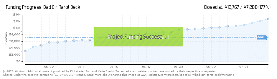 Holy smokes, we're fully funded with two whole weeks to go! And we've hit our first two stretch goals: $7,500: Create a BAD GIRL TAROT sew-on patch to include in every deck order. $8,000: Up the card print finish to super smooth. So what does this... (Read More)