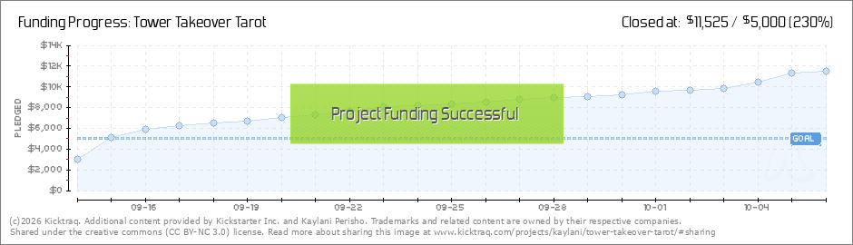 Wow. Tower Takeover Tarot has been a huge success! The goal was met and surpassed within 30 hours of launch! The project was quickly honored as a "Project We Love" by Kickstarter and currently 190% funded. Thank you to all you wonderful backers (and... (Read More)