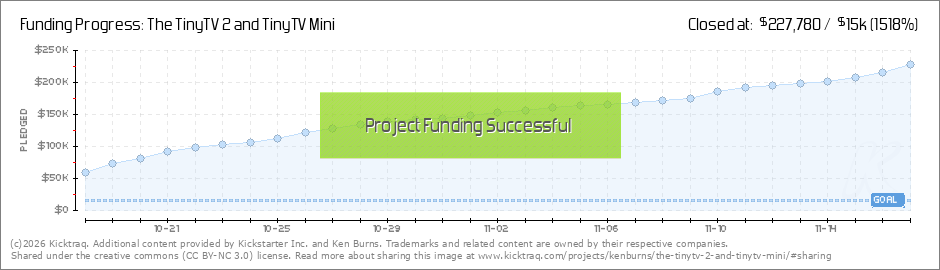 Thanks again for backing the TinyTV 2 & TinyTV Mini! We continue to be blown away by the response we're seeing and for the support you're giving us! It's just a little over one week into the campaign and we're over 750% our goal with 1250... (Read More)
