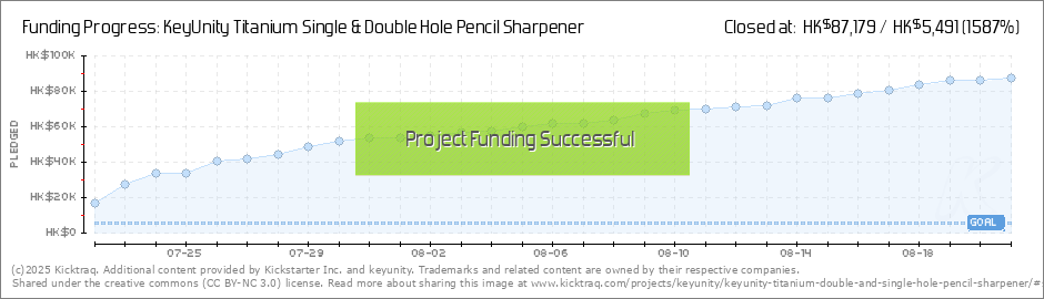 Thanks to 123 backers, we have raised nearly $9,100 USD, almost 14 times our original goal.With 9 days left, there’s still time to support this innovative project Why back the KeyUnity Titanium Pencil Sharpener? -Made from ultra-durable titanium... (Read More)