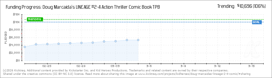 Help your backers reach your daily goals and help others see how you're doing. It's easy, with Kicktraq Mini.Here are a few quick snippits of code you can use to embed your personalized widget on your website, in your blog, and even on your favorite forum.