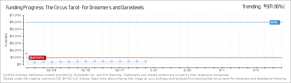 Help your backers reach your daily goals and help others see how you're doing. It's easy, with Kicktraq Mini.Here are a few quick snippits of code you can use to embed your personalized widget on your website, in your blog, and even on your favorite forum.