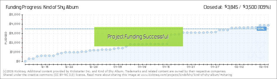 Help your backers reach your daily goals and help others see how you're doing. It's easy, with Kicktraq Mini.Here are a few quick snippits of code you can use to embed your personalized widget on your website, in your blog, and even on your favorite forum.