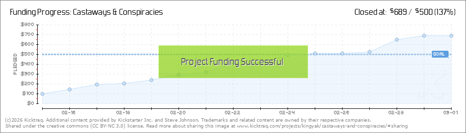 Hello Castaways, First off, Castaways & Conspiracies is now funded! Thanks to everyone who's backed the project and shared the links. We've still got a few days, so keep up the good work. I haven't posted much art in these updates, mostly... (Read More)