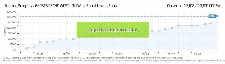 We are now just over halfway toward being fully funded. Somehow the book keeps getting more photos added. (I guess that's the ghost town junkie in me.) We still have $1,520 to raise with 13 days to go as of this update; so if you haven't already done... (Read More)