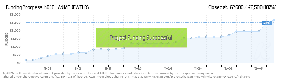 Hello everyone, We’re beyond excited to see how KOJO - Anime Jewelry is coming to life thanks to your incredible support! With only 6 days left in our campaign, we’ve reached €1,731 out of our goal of €2,500, with the help of 19 amazing... (Read More)