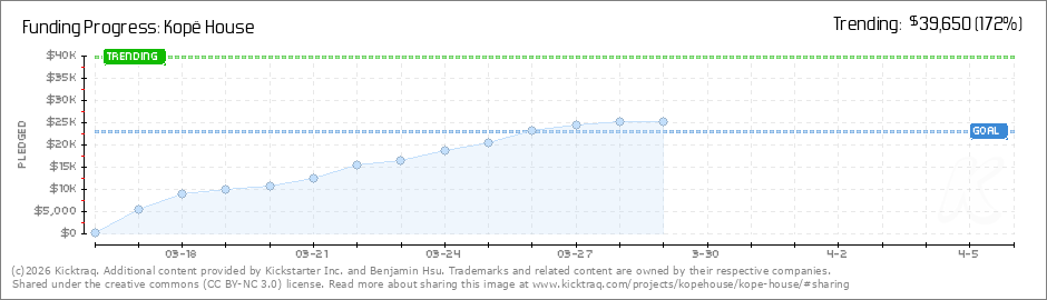 Help your backers reach your daily goals and help others see how you're doing. It's easy, with Kicktraq Mini.Here are a few quick snippits of code you can use to embed your personalized widget on your website, in your blog, and even on your favorite forum.