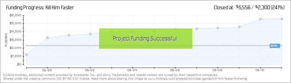 A preemptive thank you for all of your support! The last few hours of crowdfunding are upon us for Kill Him Faster, but that's okay. We did it. It's funded. If you have any friends on the fence, now's the time to remind them to get in on this. You... (Read More)