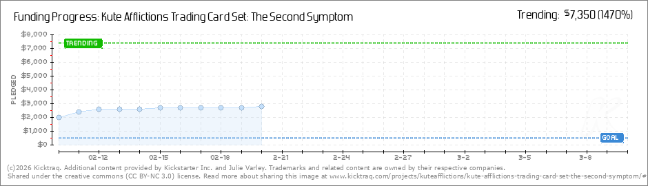 Help your backers reach your daily goals and help others see how you're doing. It's easy, with Kicktraq Mini.Here are a few quick snippits of code you can use to embed your personalized widget on your website, in your blog, and even on your favorite forum.