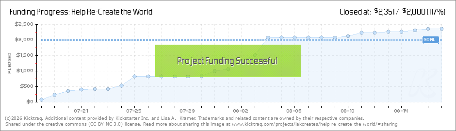 Thank you, thank you, thank you! Just funded Kickstarter Reaching this goal helps so much, and there are still 13 days left. I couldn't have done this without all of you. Please continue to spread the word, because anything that comes in over this... (Read More)