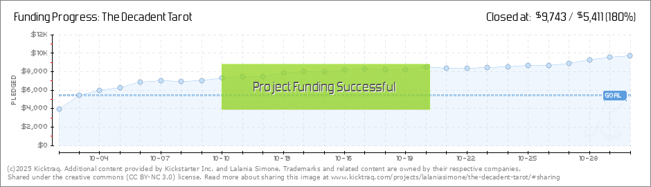 Dear Tarot Folks, Tomorrow, October 2nd, The Decadent Tarot launches on Kickstarter! There are early-bird rewards available on single decks during the first 40 hours. Thank you for your interest... I hope you love the deck! ~Lalania (Read More)