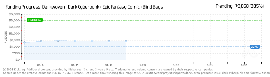 Help your backers reach your daily goals and help others see how you're doing. It's easy, with Kicktraq Mini.Here are a few quick snippits of code you can use to embed your personalized widget on your website, in your blog, and even on your favorite forum.