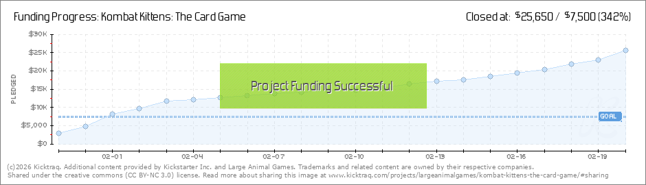 STRETCH GOAL MET! We did it! Or rather, you guys did it! We hit our first stretch goal of $15k and that means we're getting higher quality cards! This means epic Kombat Kittens battles without the fear of the wear and tear. Thank you, rock stars,... (Read More)