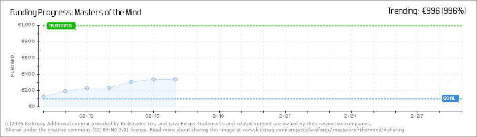 Help your backers reach your daily goals and help others see how you're doing. It's easy, with Kicktraq Mini.Here are a few quick snippits of code you can use to embed your personalized widget on your website, in your blog, and even on your favorite forum.