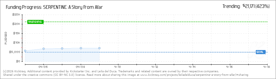Help your backers reach your daily goals and help others see how you're doing. It's easy, with Kicktraq Mini.Here are a few quick snippits of code you can use to embed your personalized widget on your website, in your blog, and even on your favorite forum.