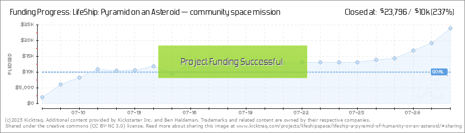 Dear LifeShip Backers, We are going to an asteroid together! π Thanks to your incredible support, we met our initial Kickstarter goalβand weβre still climbing! We look forward to continuing the momentum and doing even cooler, more ambitious... (Read More)