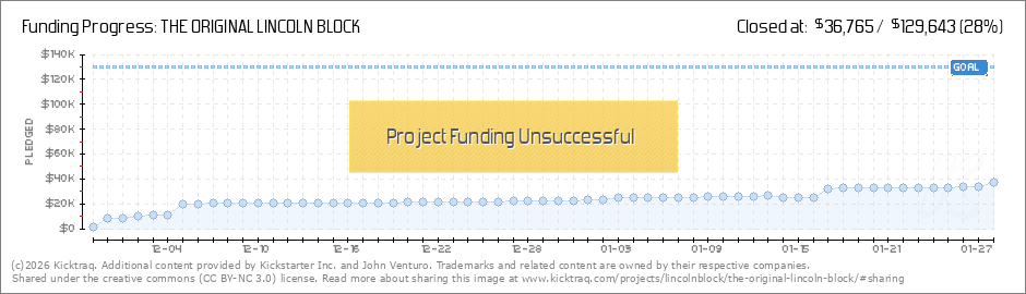 One Day Remaining! We are sad to see ourselves falling short of our financial goal to instantly kickstart Lincoln Block Inc., however we have achieved something truly great by receiving over 200 backers for our project! Keep in mind, our team didn't... (Read More)