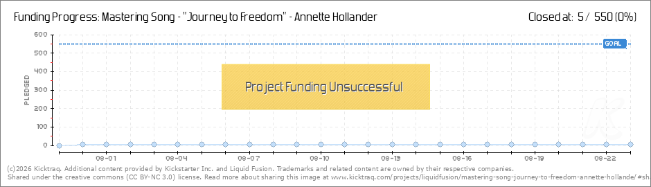 Help your backers reach your daily goals and help others see how you're doing. It's easy, with Kicktraq Mini.Here are a few quick snippits of code you can use to embed your personalized widget on your website, in your blog, and even on your favorite forum.