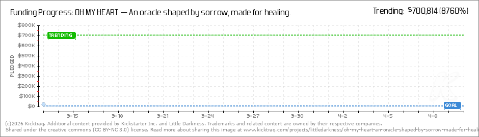 Help your backers reach your daily goals and help others see how you're doing. It's easy, with Kicktraq Mini.Here are a few quick snippits of code you can use to embed your personalized widget on your website, in your blog, and even on your favorite forum.