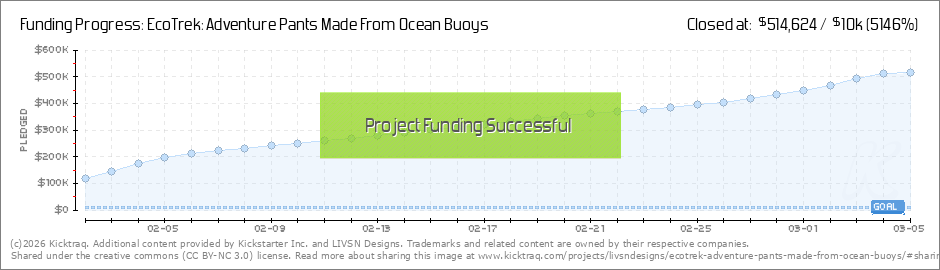LIVSN Designs, a young and innovative outdoor apparel brand, is using Kickstarter to launch its new EcoTrek Trail pants — comfortable, high-performance pants tailored to look good in the city and withstand the harshest outdoor conditions. The proprietary fabric used in the EcoTrek pants, Blue Ocean Nylon, is a synthetic nylon thread made from 70 percent ocean waste. (Read More)