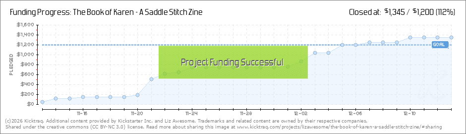 Hello Book of Karen Backers, I am so excited to announce that we successfully completed funding last night! Thank you so very much for your support! I cannot wait to share the completed zine with you! In that magical moment, I found myself at a... (Read More)