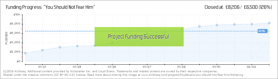 I’m genuinely blown away by the response to this project! As of today, “You Should Not Fear Him” is 114% funded, with 3 days still to go. Thank you so much to every single person who has backed, shared, commented, or encouraged this campaign... (Read More)