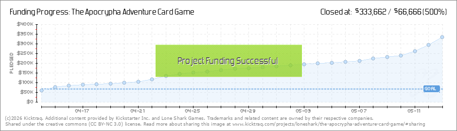 Thanks to all our backers for getting us to our goal in less than 24 hours! We have a long way to go on the campaign, but the key is that we are definitely making the Apocrypha Adventure Card Game. This is a vision we had almost four years ago, and... (Read More)