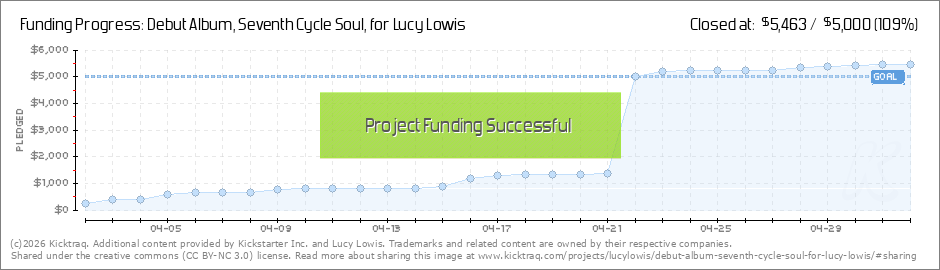 Hello Musical Friends !! Just wanted to say THANK YOU to all who have pledged, we have hit Lucy's goal and we are so happy to have you all be a part of bringing Seventh Cycle Soul to life :) The campaign runs until this SAT May 2, so make sure you... (Read More)