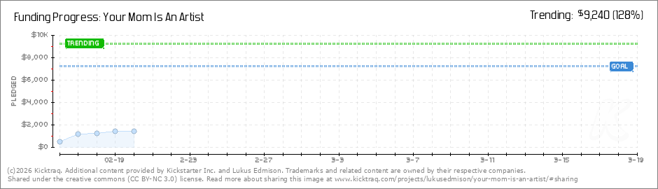 Help your backers reach your daily goals and help others see how you're doing. It's easy, with Kicktraq Mini.Here are a few quick snippits of code you can use to embed your personalized widget on your website, in your blog, and even on your favorite forum.