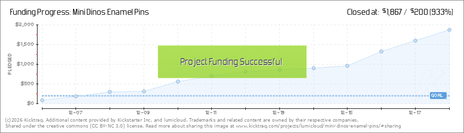 Thank you so much! Thank you for being part of this campaign! I appreciate all the support. We've reached 100% of our funding goal and have unlocked all the stretch goals. Backer surveys will be sent out shortly for you to choose your dino pins. I am... (Read More)