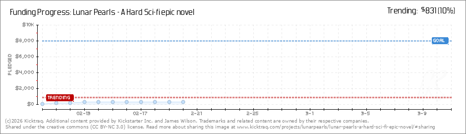 Huge thanks to my wife for supporting the campaign and plugging Lunar Pearls on Mark Kaye's show today. He read her message live, showed the page to his audience, and said he'd like to talk publishing. Grateful doesn't cover it. Let's keep the... (Read More)
