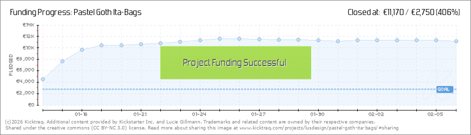 Hey <3 thank you so much together we unlocked the bunny bag in lilac and light pink and the baphomet in 3 colors: red, pastel, and lightblue-lightpink, white You can choose your favorite color and design after the campaign <3 I will send a... (Read More)