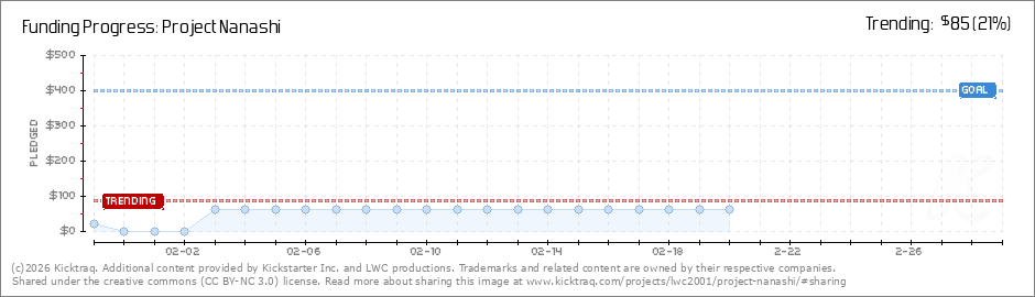 Help your backers reach your daily goals and help others see how you're doing. It's easy, with Kicktraq Mini.Here are a few quick snippits of code you can use to embed your personalized widget on your website, in your blog, and even on your favorite forum.