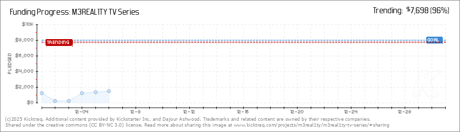 Help your backers reach your daily goals and help others see how you're doing. It's easy, with Kicktraq Mini.Here are a few quick snippits of code you can use to embed your personalized widget on your website, in your blog, and even on your favorite forum.