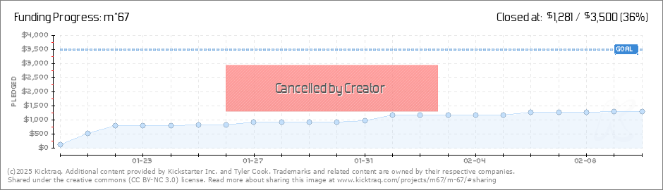 Hey Everyone! Unfortunately, we have decided to cancel m^67. This is mainly for personal reasons, not reasons specifically related to the film. Since Kickstarter only charges you after the goal has been raised, everyone will get their money back/not... (Read More)