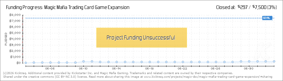 Help your backers reach your daily goals and help others see how you're doing. It's easy, with Kicktraq Mini.Here are a few quick snippits of code you can use to embed your personalized widget on your website, in your blog, and even on your favorite forum.