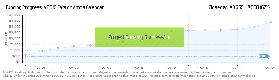 WOW! Thank you! In the first 6 hours, we achieved our funding goal. THANK YOU! So, this means that the 2018 Cats on Amps Calendar is a DEFINITE! (Read More)