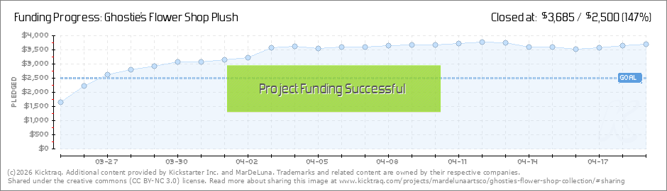 Thank you everyone who backed this project! I truly appreciate it! I am so excited to get everyone their ghostie plushies and hopefully much more once get the other items unlocked! Speaking of locked items: if you haven’t noticed I have made a few... (Read More)