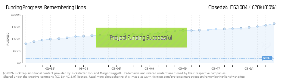 Just a quick note to say a MASSIVE thank you to everyone who has supported us so far this year on our campaign to fund Remembering Lions!! In year one we hit £20,000 in 12 hours, in year two it took 3 hours, last year it was half an hour and we... (Read More)