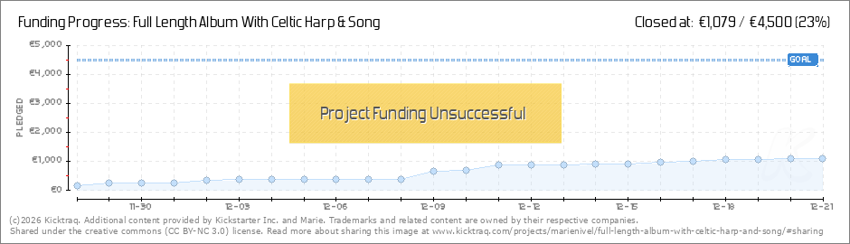 Dear Friends! I want to thank each and everyone of you, for believing in and supporting my music, it has touched my heart! <3 KICKSTARTER only works if the financial goal is met fully, which it hasn´t, so you all will receive your money back. If... (Read More)