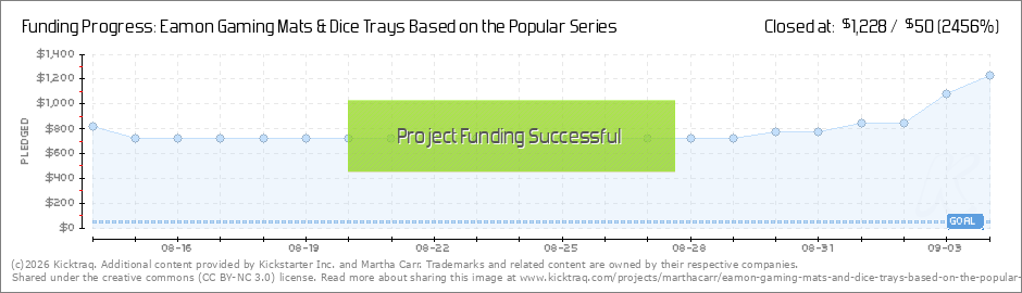 It's the last week in August and the last week of the Eamon Play Mats and Dice Trays Kickstarter! If you've been on the fence, now's your chance to join in. Don't have the book? They're available in the add-on section. Need more proof - like an... (Read More)