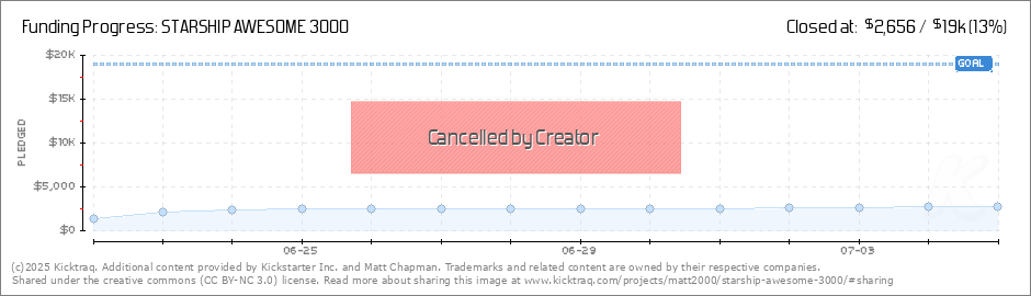 Hey backers & friends! It's clear at this point that we don't have the momentum to make it to the end of this campaign successfully. But never fear: This is not the end for Starship Awesome 3000. We're going to take some time to re-group, explore... (Read More)