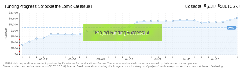 Now that you've helped us reach our initial goal, we've a new incentive level with a brand new reward: an official Spokane Comicon Sprocket the Comic-Cat T-Shirt! 100% Cotton. 100% Action!100% Cotton. 100% Action! 100% Cotton. 100% Action!... (Read More)