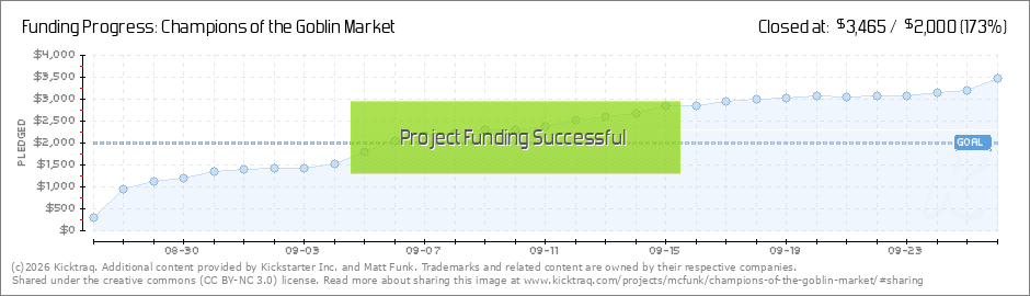 An outstanding end of the week has brought Champions of the Goblin Market only $130 away from our $3,000 stretch goal for Stefan Poag interior art. Let's keep sharing to make that goal! Stefan's astounding work on the cover has already been sketched,... (Read More)