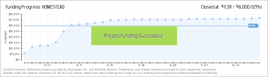 HOMESTEAD is officially fully funded!! We cannot thank you guys enough for helping us reach our goal in only a week! Our real-time reaction: You'll need an HTML5 capable browser to see this content. Play Replay with sound Play with sound 00:00 00:00... (Read More)